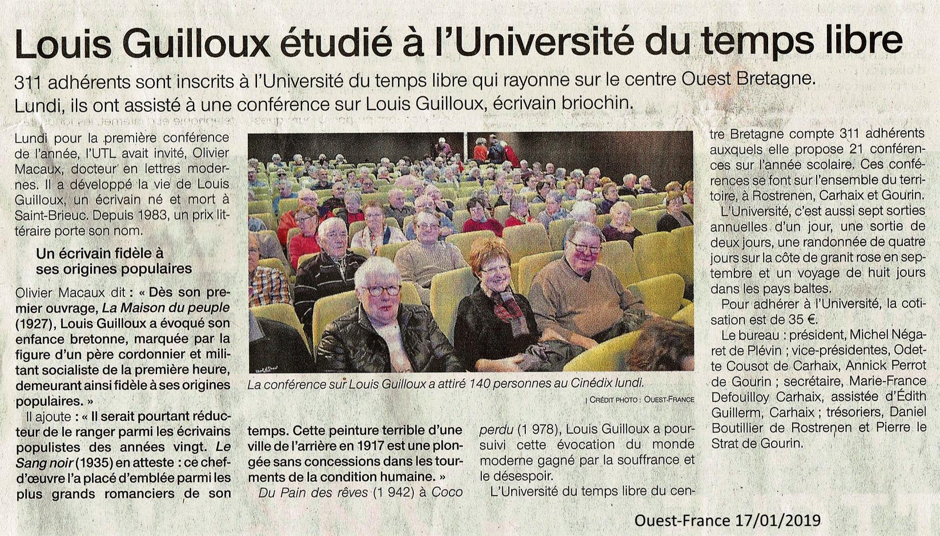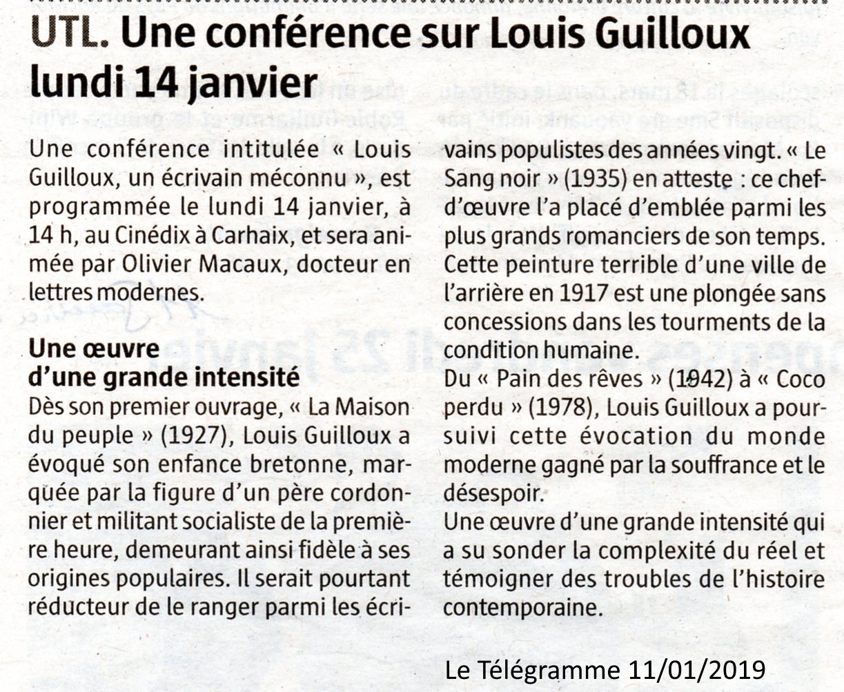 "Louis GUILLOUX, un écrivain méconnu" par Olivier MACAUX le 14/01/2019