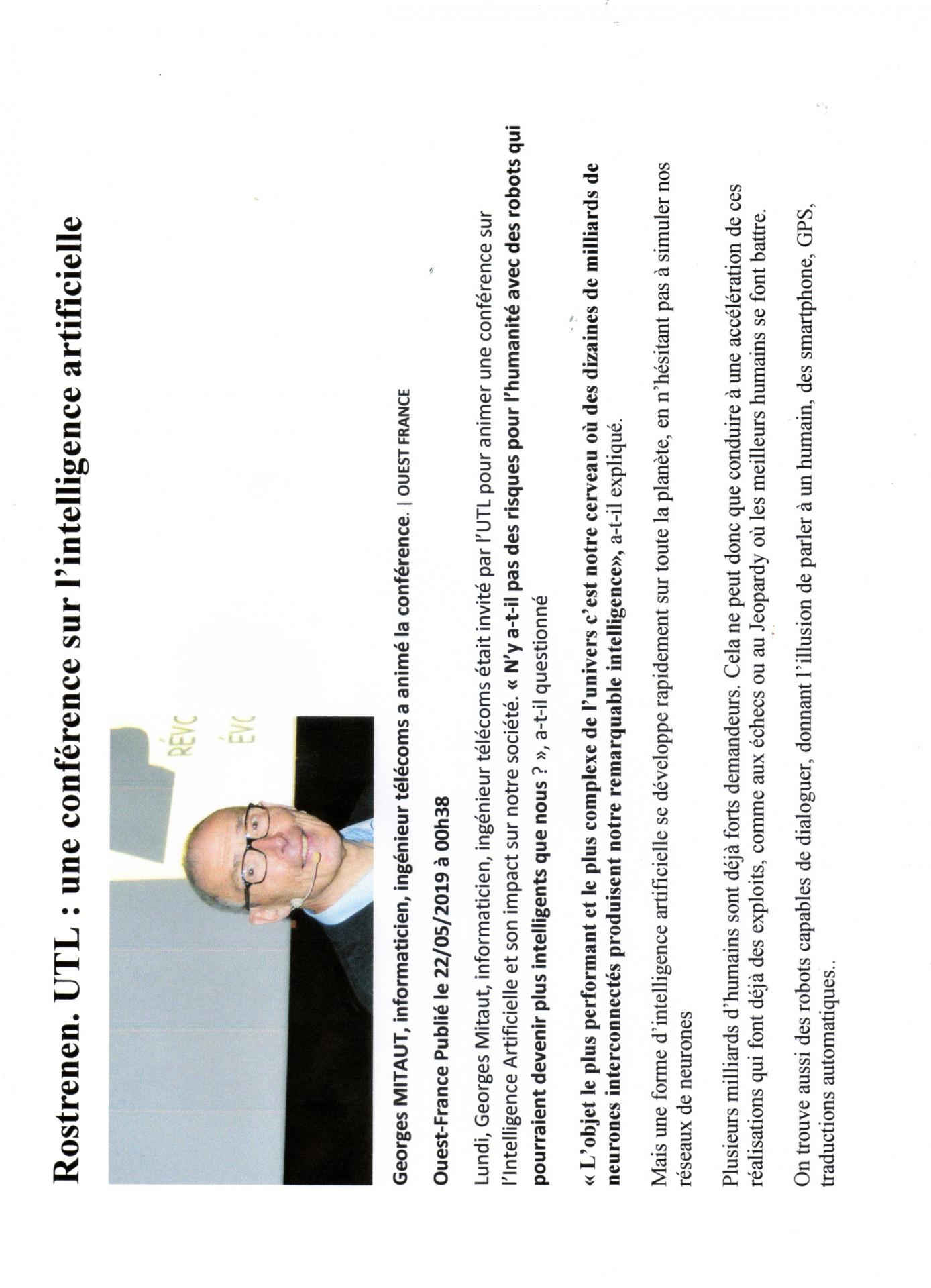 Où va nous mener l'intelligence artificielle ? par Georges MITAUT le 20/05/2019