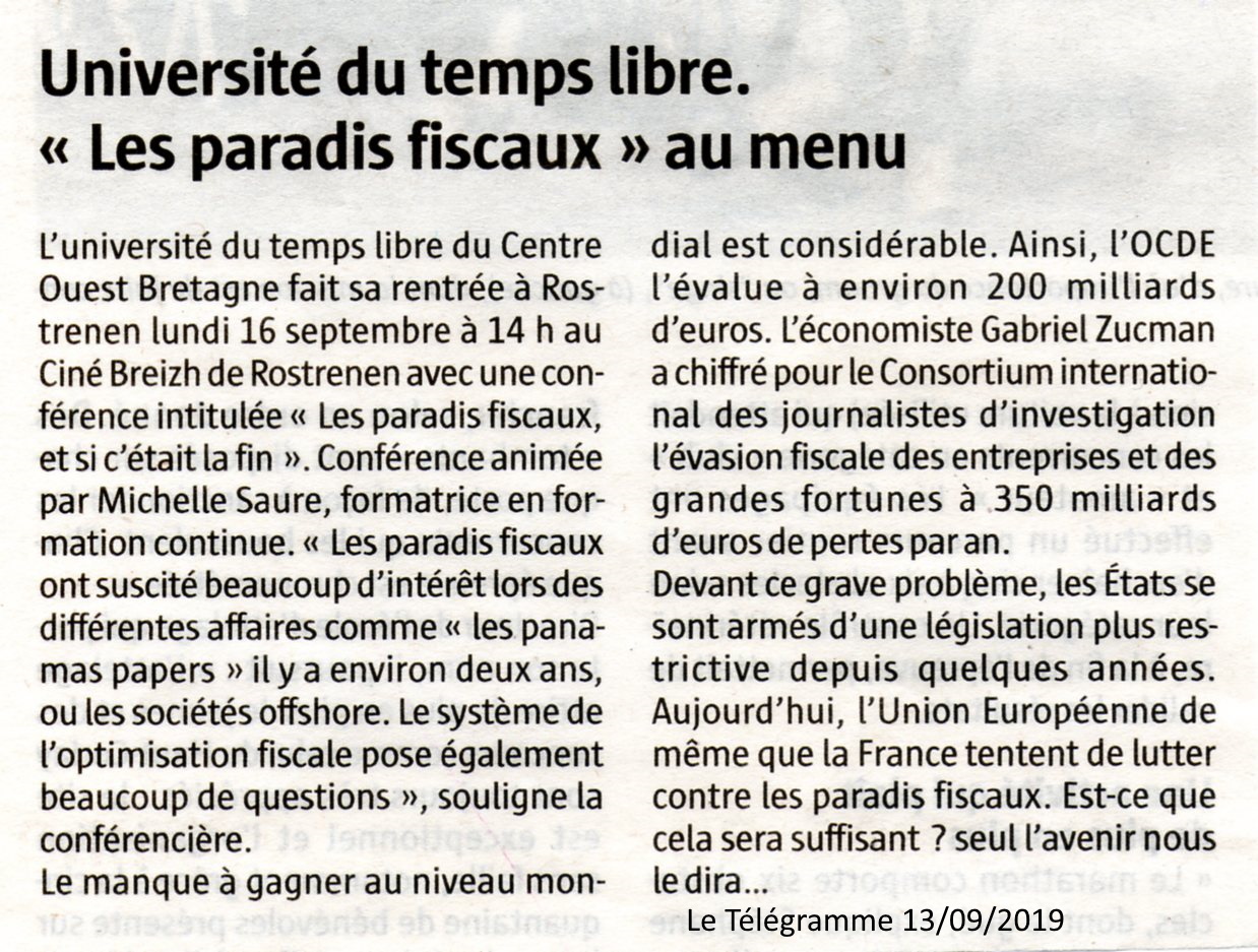 Les paradis fiscaux et si c'était la fin par Michelle SAURE le 16/09/2019