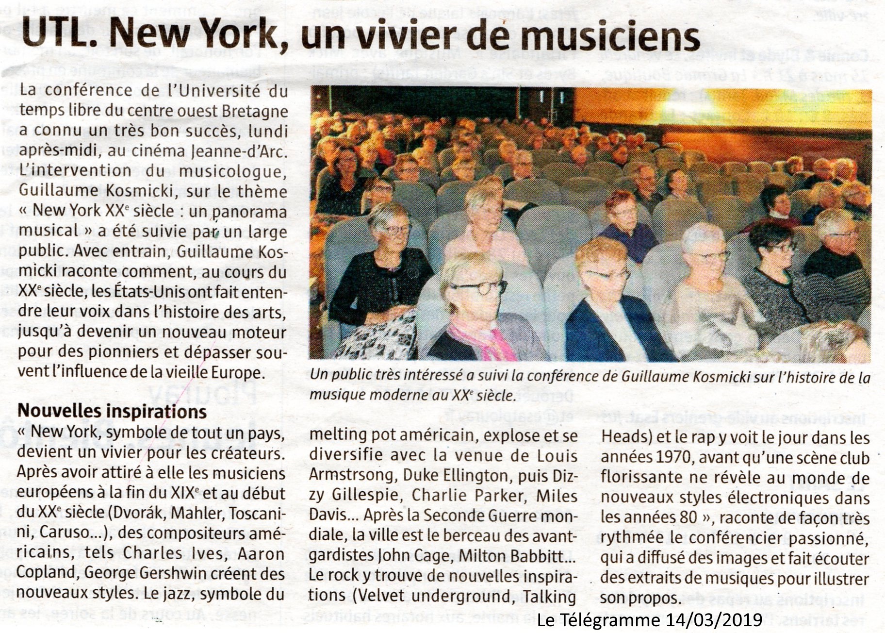 New York XX ème siècle : un panorama musical par Guillaume KOSMICKI le 18/03/2019