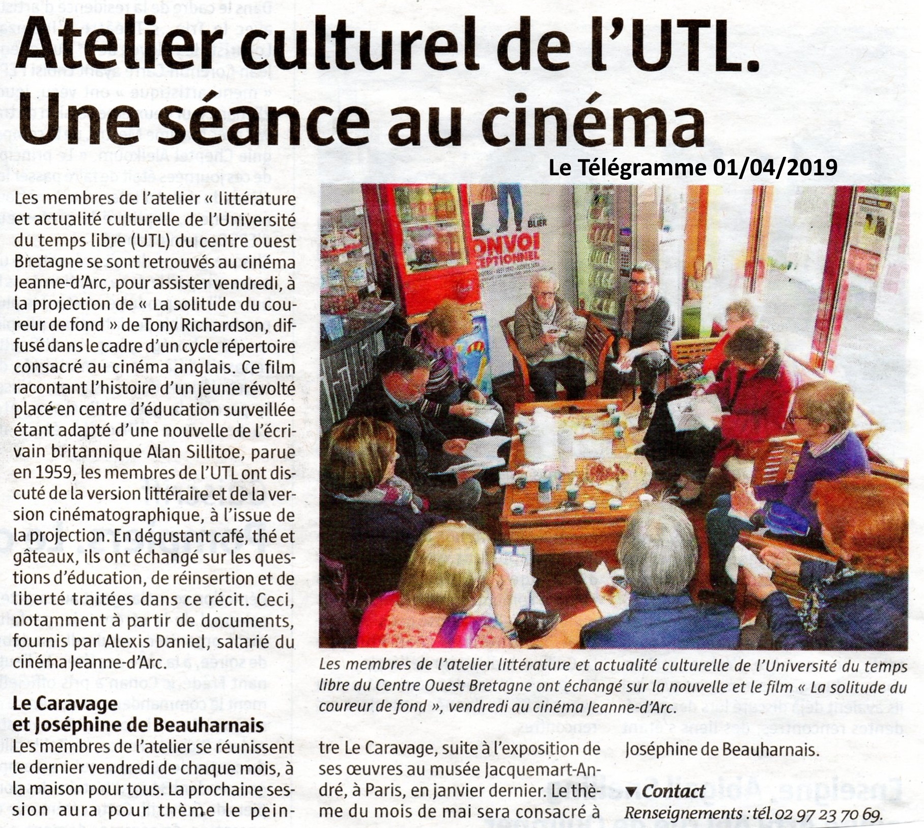 Atelier Littéraure et Actualités culturelles, séance cinéma du 29/03/2019