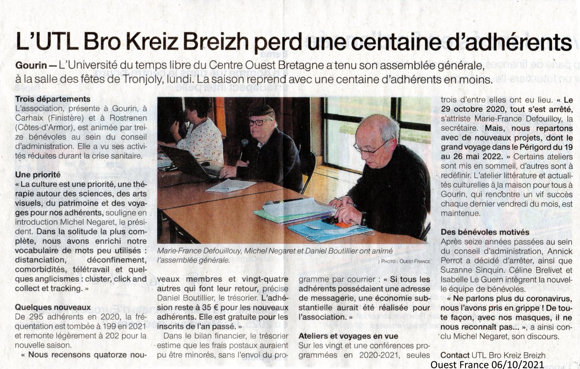 Assemblée Générale ordinaire à Gourin le 04/10/2021