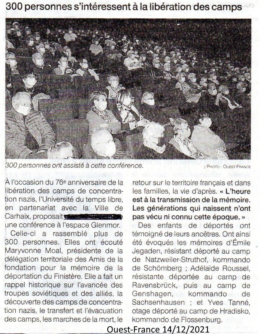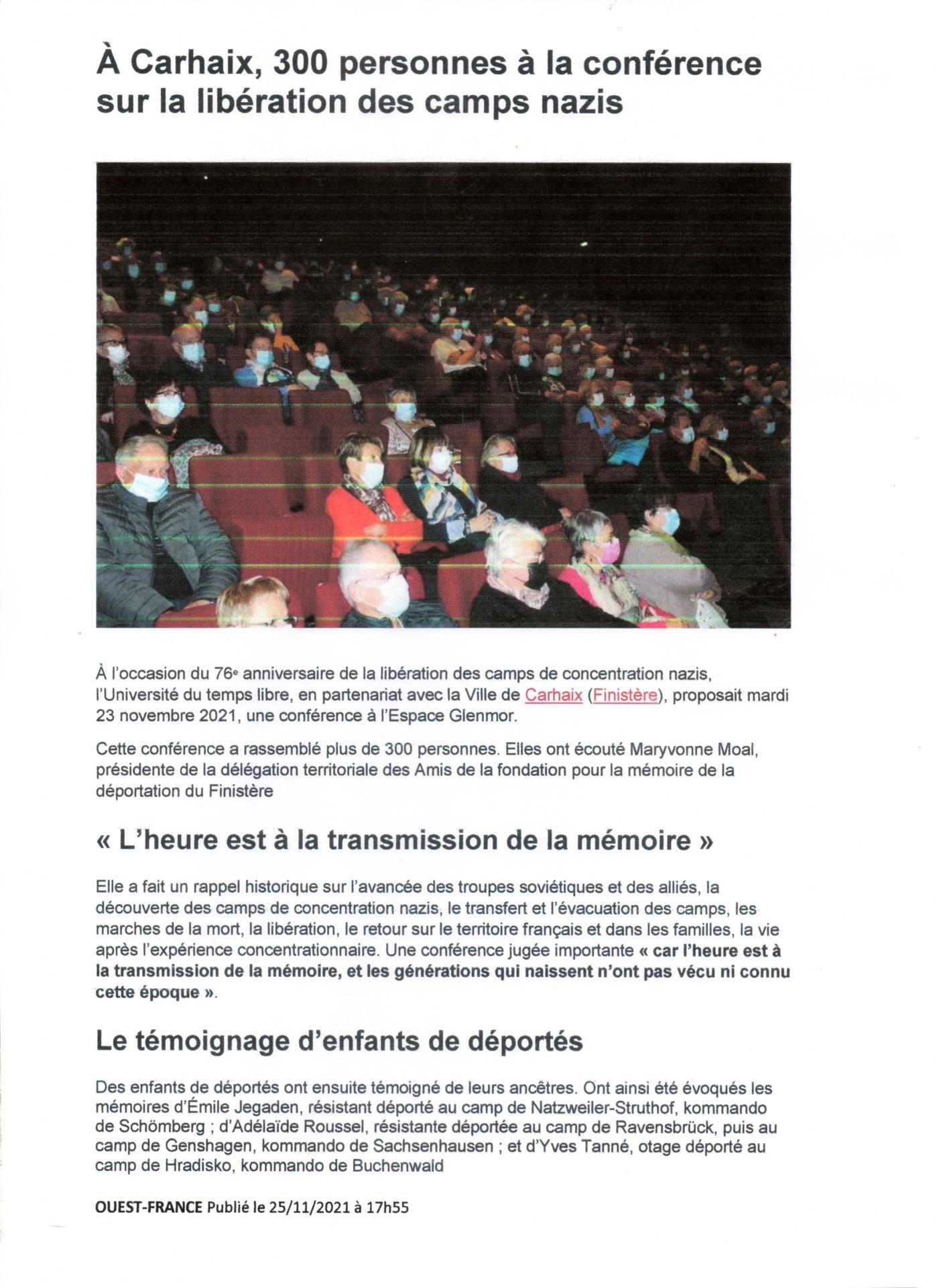 2021- 76ème anniversaire de la libération des camps de concentration nazis. Le retour à la liberté des déportés. par Maryvonne Moal le 23/11/2021