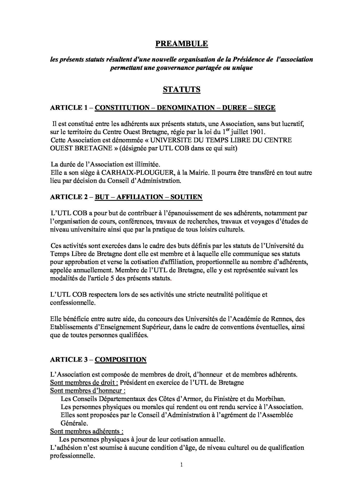 UNIVERSITE DU TEMPS LIBRE DU CENTRE OUEST BRETAGNE